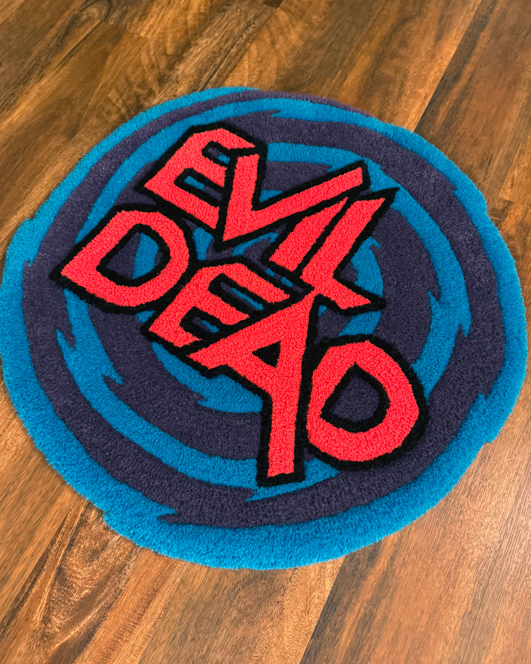 A custom 26 inch diameter hand-tufted rug made from soft wool yarn—crafted with care, cursed with style.