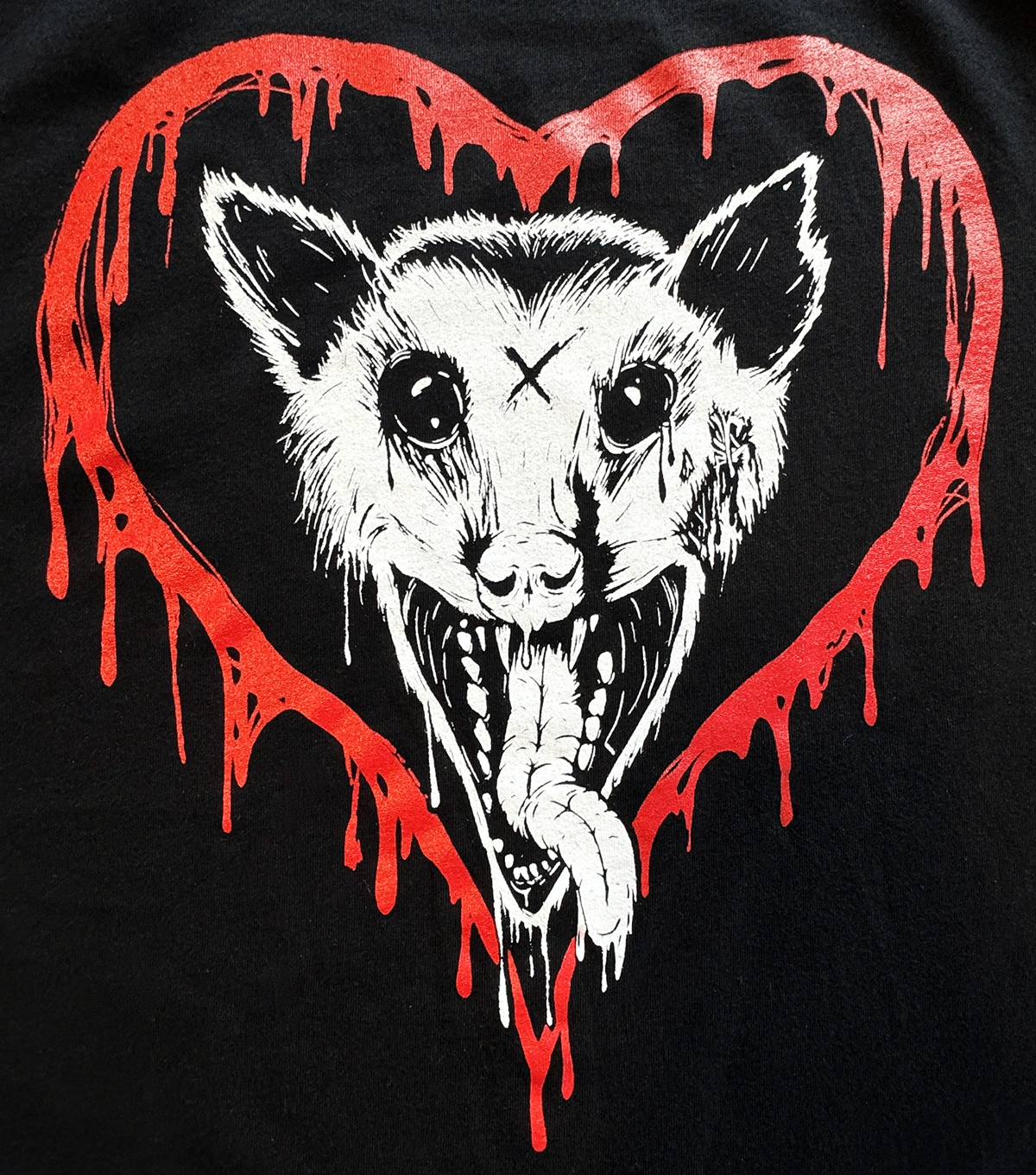 Spread the love, one possum at a time. Artwork by Josiah Wood. Printed by Stinky Salmon on Bella Canvas Soft Cotton, available in limited sizes.
